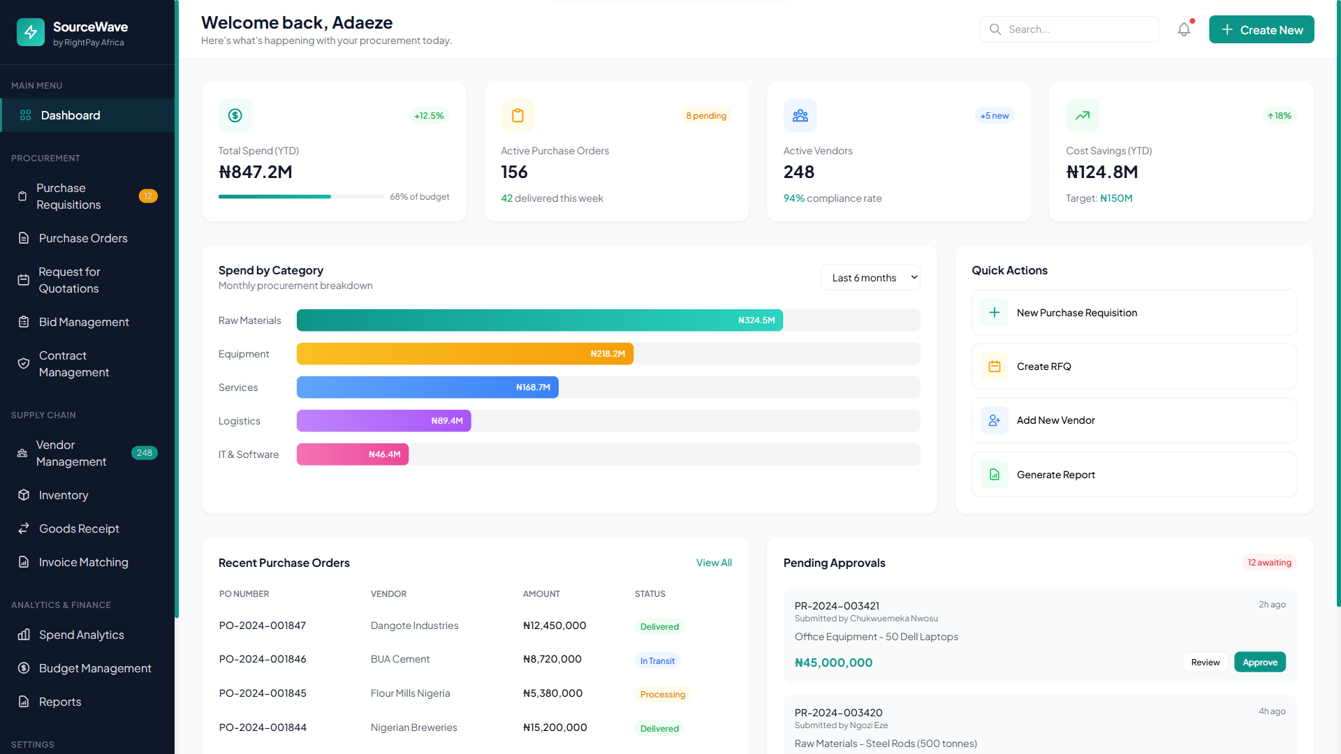 From requisition to final settlement, automate your entire purchasing workflow. SourceWave by RightPay Africa provides the visibility and control needed to optimise stock levels and manage supplier relationships with ease.